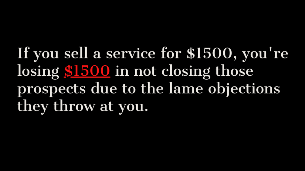 If you sell a service for $1500, you're losing $1500 in not closing those prospects due to the lame objections they throw at you.